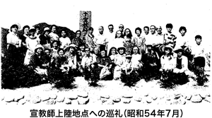 管区会議が開かれ、日本宣教に関する2つの問題点を 討議した。1つは前述の教皇勅書であるが、マニラ司教 や総督と相談した結果、「薩産の散からの招待であるから 修道士派遣は差し支えなし、教皇には事後承諾でよかろ う」と結論された。もう1つの問題、人員の件は折良く スペインから31名のドミニコ会土がマニラに到着したこ とで解決された。早速、第一次日本宣教団が結成され、 サント・ドミンゴ修道院長フランシスコ・モラーレス神 父が管区長代理に任命された。一行はトマス・エルナン デス、アロンソ・デ・メナ、トマス・デ・スマラガの諸 神父とフアン・デ・ラ・アバディア修道士で、全員の平 均年齢が30歳という若さであった。1602(慶長7)年6月1日、モラーレス神父に来日を要請する島津忠恒の書 簡を持って来た吉右衛門の船でマニラを出発した。船中 で、彼らは管区規則を忠実に守り、清貧に徹した生活を 証しするために、持っていた現金を加長の吉右衛門に渡 し、自分たちの財布を空にしたのである。 35日間の航海の後、7月3日夜、一行は吉右衛門の出 身地、甑島に上陸した。その場所は鹿児島県串木野港の 沖にある下甑島長浜町手打の浜辺で、そこには地元の人 々の手によって立派な「宣教師上陸記念碑」が建立され ている。彼らはその地で一番よい家(寺であろう)に案 内された。そこで、マニラ総督から贈られた聖母マリア の絵を飾り、一同は「サルベ・レジナ(聖母賛歌)」を歌 って無事な到着を感謝し、最初の夜を過ごした。