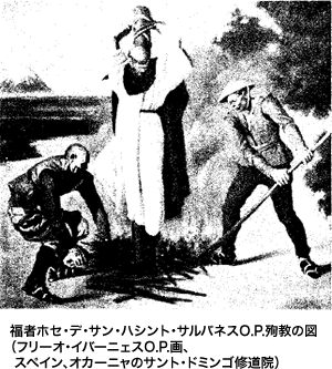 ベルトラン神父はドミニコ会の聖人ルイス・ベルトランの近親者で、彼の愛徳は大村の信徒の心を深く捕え、1626(寛永3)年までそこで働いていたが、1人のキリシタンの裏切りにより、協力者であったマンショ(老人)とペドロ(16歳)の2人と共に捕えられた。神父はこの2人にドミニコ会士として入会を許可し、マンショ・デ