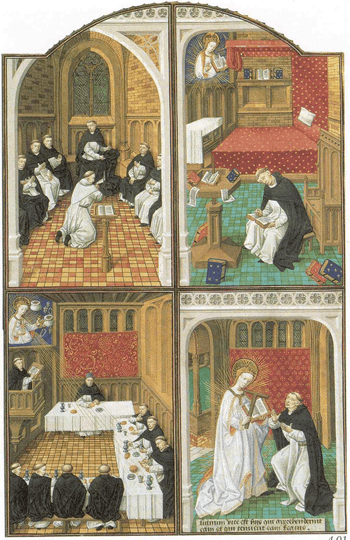 さて、右に記した様々の修道会が、これらのすばらしい固有の特徴を神から恵まれたのなら、それならばドミニコ会の特徴、つまりドミニコ会の霊聖とは何なのでしょうか。何となく他の修道会にすべてが与えられて、ドミニコ会にはもう何一つ残っていないような気がします。聖霊の賜は数えきれない程多くある故、そのような心配はいりません。実際に各修道会において賛美、孤独、愛、神の栄光など、それぞれ何を最も求めるか、各会によって多少そこに特徴の強弱が生じているのです。それまではドミニコ会のモットーとしているものは何なのでしょうか。少し考えてみることにしましょう。
