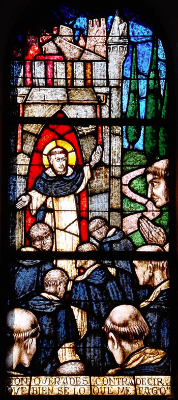 一年後、ドミニコは、スペインを訪れ六ヵ月ぐらいとどまり、パリに行きました。ヨルダヌスによりますと、1218年、ドミニコはスペインに二つの修道院を建てました。一つはマドリッド(現在は女子修道院なっています)に、そしてもう一つはセゴビアでした。これらは、スペインに於ける最初の修道院となりました。そしてパリに寄り、そこで30名の新しい兄弟達に出合いました。最初にパリに送ったのは四、五人だけでしたのに、一年経たないうちにその数は30人に増えていました。パリからイタリアのミラノ、ボローニアに行き、1220年の冬再びローマに行き、聖サビナの男子修道院を設立し、聖シクストの女子修道院をも建てることを計画し始めました。伝統によりますと、1220年の冬か、あるいはもう少し前かもしれませんが、ドミニコとフランシスコがローマで初めて出合ったそうです。ドミニコはフランスシコの清貧に深く感動し、フランシスコはドミニコのみ言葉に対する深い知識に感嘆し、互いに影響を与え合ったそうです。