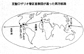 1586年7月17日、ドミニコ会士の一行はカディス港からメキシコへ向かった。船中での彼らの生活は祈りと勉学の明け暮れで、まるで修道院生活のようであった。同年9月29日、ベラ・クルスに上陸し、メキシコ市へ向けて徒歩で旅を続けた。突然の気候の変化とこれまでの苦労の疲れから多くの病人と死者がでた。旅の苦労以上に彼らを悩ませたのは旅を終えてメキシコ市に着いてからのことであった。それはマニラからスペインへ向かう途中、メキシコ市に滞在していたイエズス会士アロンソ・サンチェス神父がフィリピンでは宣教の成果は少なく、これ以上の宣教師の派遣は王室財産の浪費に終わるだけだとメキシコ総督に報告していたので、到着したドミニコ会士のうち12名しかフィリピン渡航が許されなかった。この報告はマニラ司教サラサールの考えとは全く逆のことであった。一行は神の摂理に信頼しつつ、祈りのうちに困難の妥結を願い、総督から18名の渡航許可を受けることができた。うち15名はマニラへ、3名はマカオへ向かうことになった。