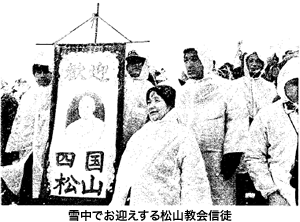 1981(昭和56)年2月24日より3日間、ローマ教皇ヨハネ・パウロ二世が訪日された。歴史的な出来事である。愛媛地区信徒代表菅不二男氏が東京で教皇に謁見、また広島と長崎を訪問される教皇を歓迎する集会に多くの信徒が参加Lた。松山教会では周辺の諸教会に呼び掛けて巡礼団を組織し、長崎での歓迎集会に参加した。大雪できびしい寒さの日であった。訪日に先立ってフィリピンを訪問された教皇は、2月18日マニラのルネタ公園に集まった200万人の大群衆の中で、17世紀に長崎で殉教した至聖ロザリオ管区の16名を福者の位に列せられた。愛媛地区からもサトルニーノ地区長と3名の神父、3名の修道女、4名のドミニコ信徒第三会員が列福式に参加する喜びを味わった。