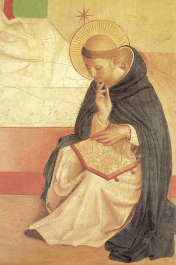 ドミニコ会的観想の中心は神のみ言葉たるキリストである…と言えるのです。勿論のこと、キリストは父と聖霊を直接結ばれている絆ですから、御子について観想するなら御父と御子と聖霊がいつも浮かんできます。しかしながら御父と聖霊を結びつけている絆は、キリストですから、従ってわたし達の観想の中心はイエズス・キリストであると言えましょう。「イエズス・キリスト 即ち十字架につけられたイエズスの他は何も知らなくてもよい」(コ、2.2)とパウロが言っていますが、この言葉はドミニコ会の霊性の特徴をうまく表現しています。キリストこそ、父のみ許に行く道であり、その道がなければ救われません。トマス・アクィナスは、「神学大全」の中で、その数百ページをイエズスについて述べていますが、これは受肉とあがないの神秘の解釈(イエズスの障害、救いのいけにえ、復活、昇天、教会の設立、秘跡、終末再臨など)を語っています。